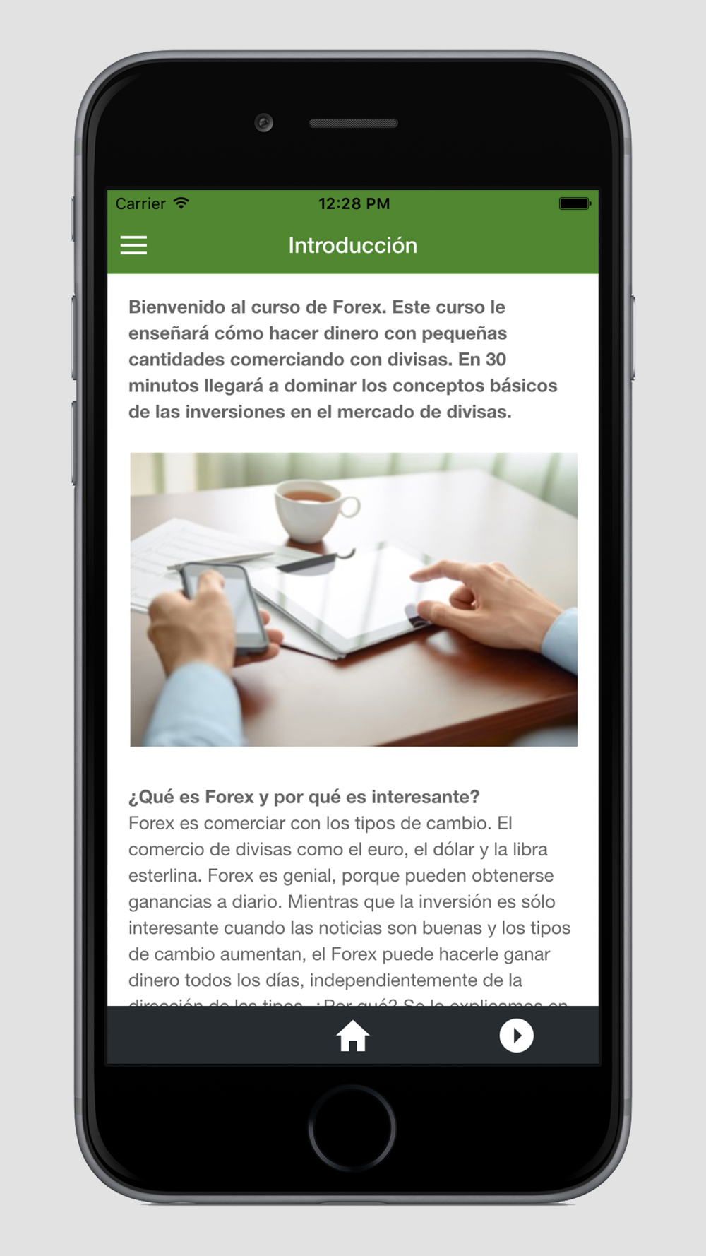 Con esta aplicación podrá aprender a invertir en Forex en sólo 30 minutos. Esta aplicación le convertirá en un comerciante de divisas independiente. Forex es comerciar con los tipos de cambio. Inversores en el mercado de los tipos de cambio de divisas como el euro, el dólar y la libra esterlina. Forex es genial porque pueden obtenerse ganancias a diario. Esta aplicación de Forex le enseñará cómo ganar pequeñas cantidades de dinero con el comercio de divisas.