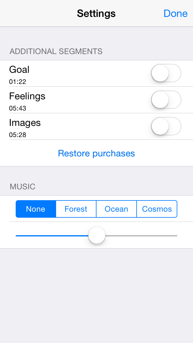 This app will let you experience deep relaxation of yoga-nidra - gradual shift of attention from one body part to the next. Your headphones and a level surface are the only things that you need. Additional options include: practice goal, vivid images, and sensual feelings, for a complete cleansing and spiritual relaxation.
