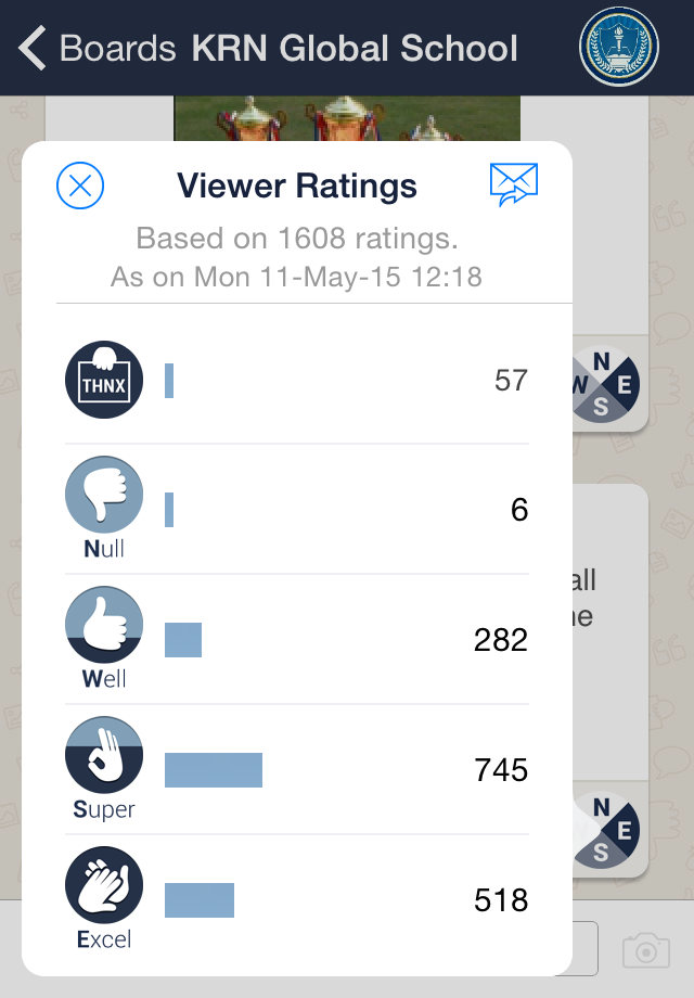 Follower can rate announcement using structured feedback options, summary of which is visible to board owner only.