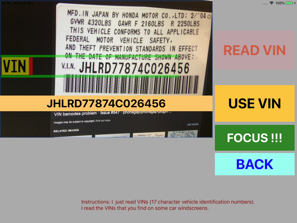The app can automatically read VIN (vehicle identification numbers) and license plates using OCR right on your iPhone or iPad. The app will also read VIN barcodes.