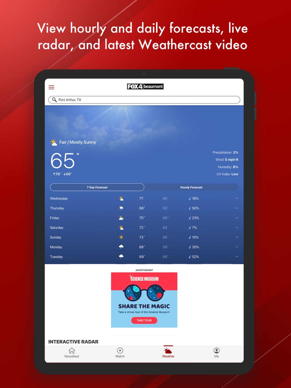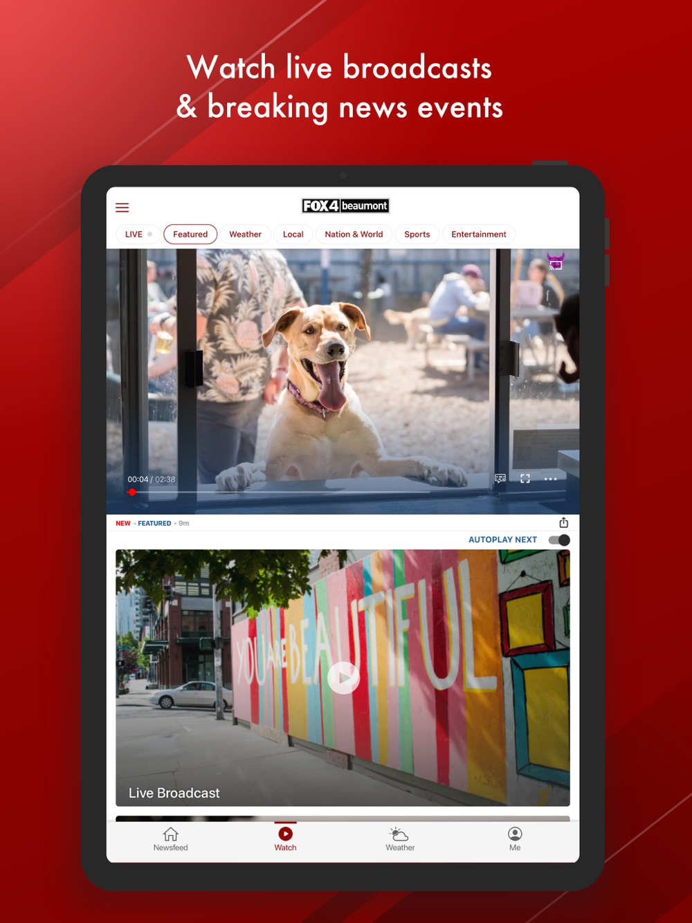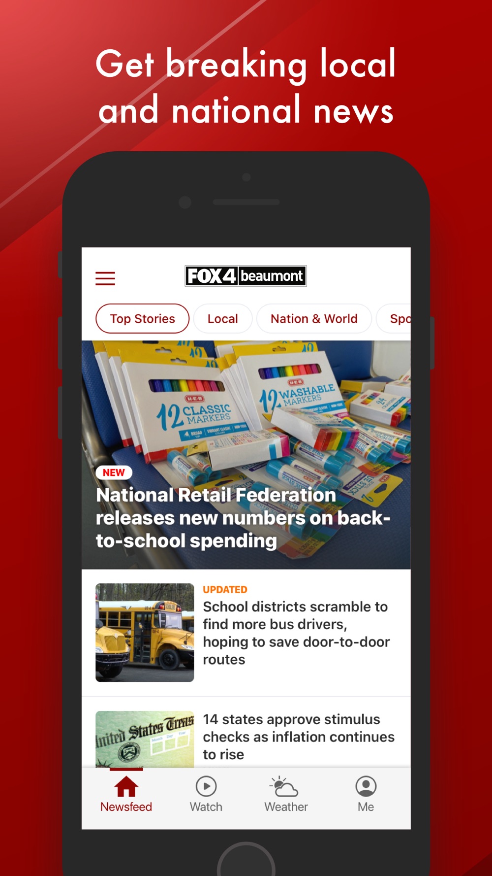 The Fox 4 app delivers news, weather and sports in an instant. With the new and fully redesigned app you can watch live newscasts, get up-to-the minute local and national news, weather and traffic conditions and stay informed via notifications alerting you to breaking news and local events.