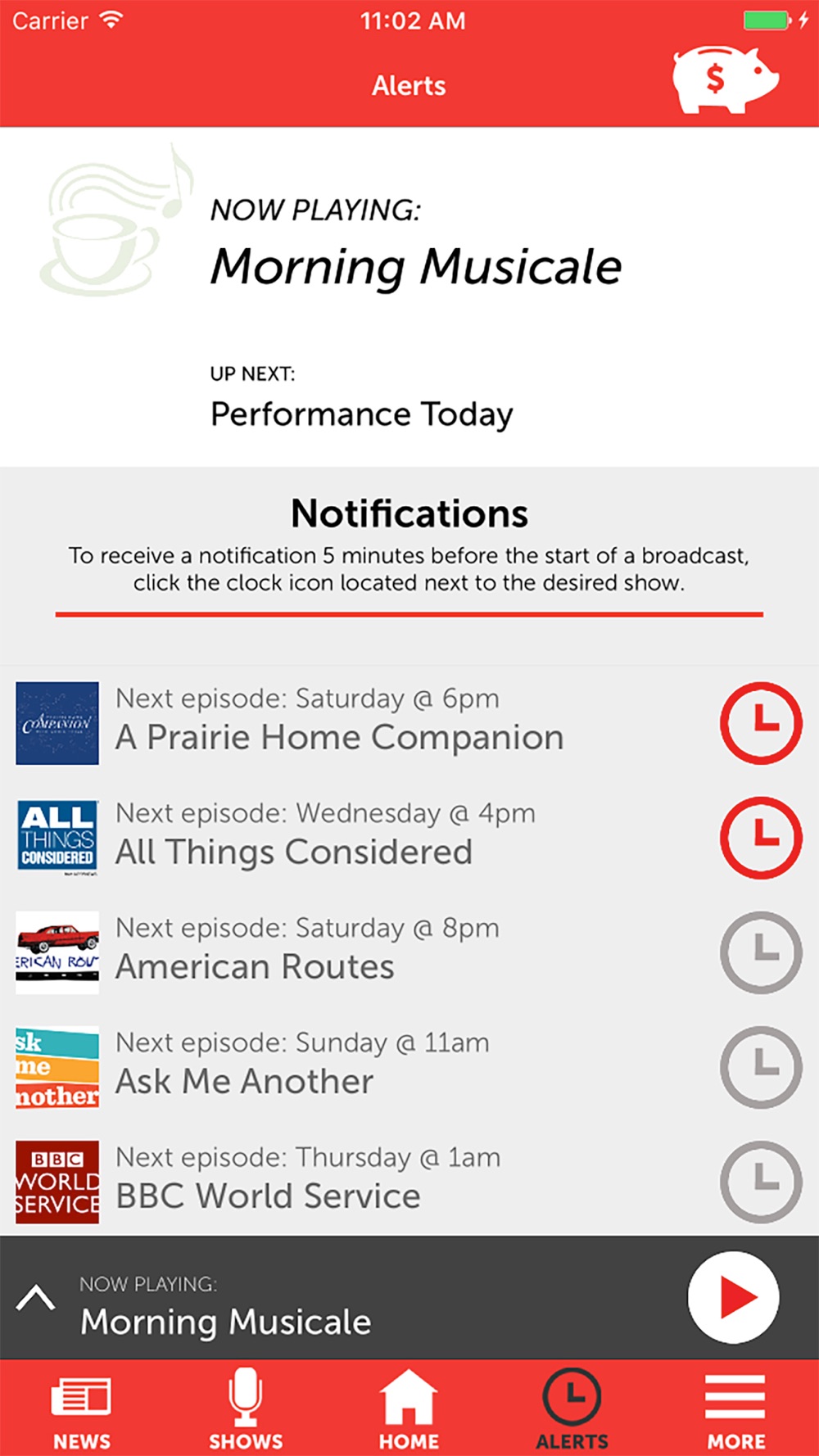 Look at the upcoming IPR schedule and be notified when your favorite broadcasts are about to begin - from All Things Considered to Car Talk.