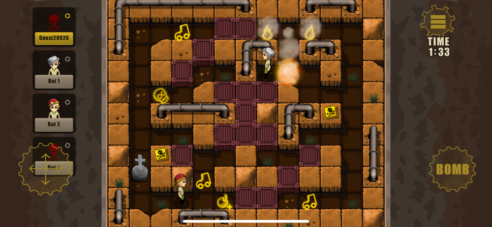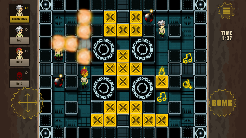 Playing in groups of up to 4 players total, he who survives longest wins! You always have to be on your toes and be extremely swift. But being fast is not enough. You need top place bombs with strategy to effectively kill your enemies.