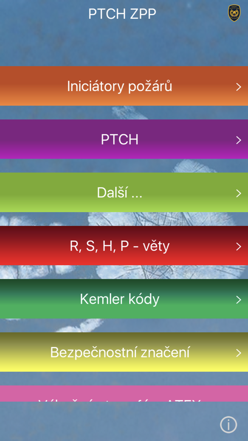 Aplikace nabízí čtyři informační části. První část s názvem PTCH nabízí abecední seznam látek a materiálů s uvedením jejich základních požárně technických charakteristik, tak jak byly získány z odborné literatury nebo byly změřeny při laboratorních zkouškách. Aplikace v druhé části nabízí přehled základních a nejčastěji se vyskytujících iniciátorů požárů. Třetí část obsahuje doplňující informace z oblasti doprovodných jevů požáru, bezpečnostního značení, označování nebezpečných látek při silniční přepravě a informace definující povahu látek formou H a P vět. Čtvrtá část je věnována základům z oblasti výbušných atmosfér a protivýbuchové prevence. Mobilní aplikace je primárně určena pro vyšetřovatele požárů, může však také sloužit každému, kdo se zabývá požární ochranu.