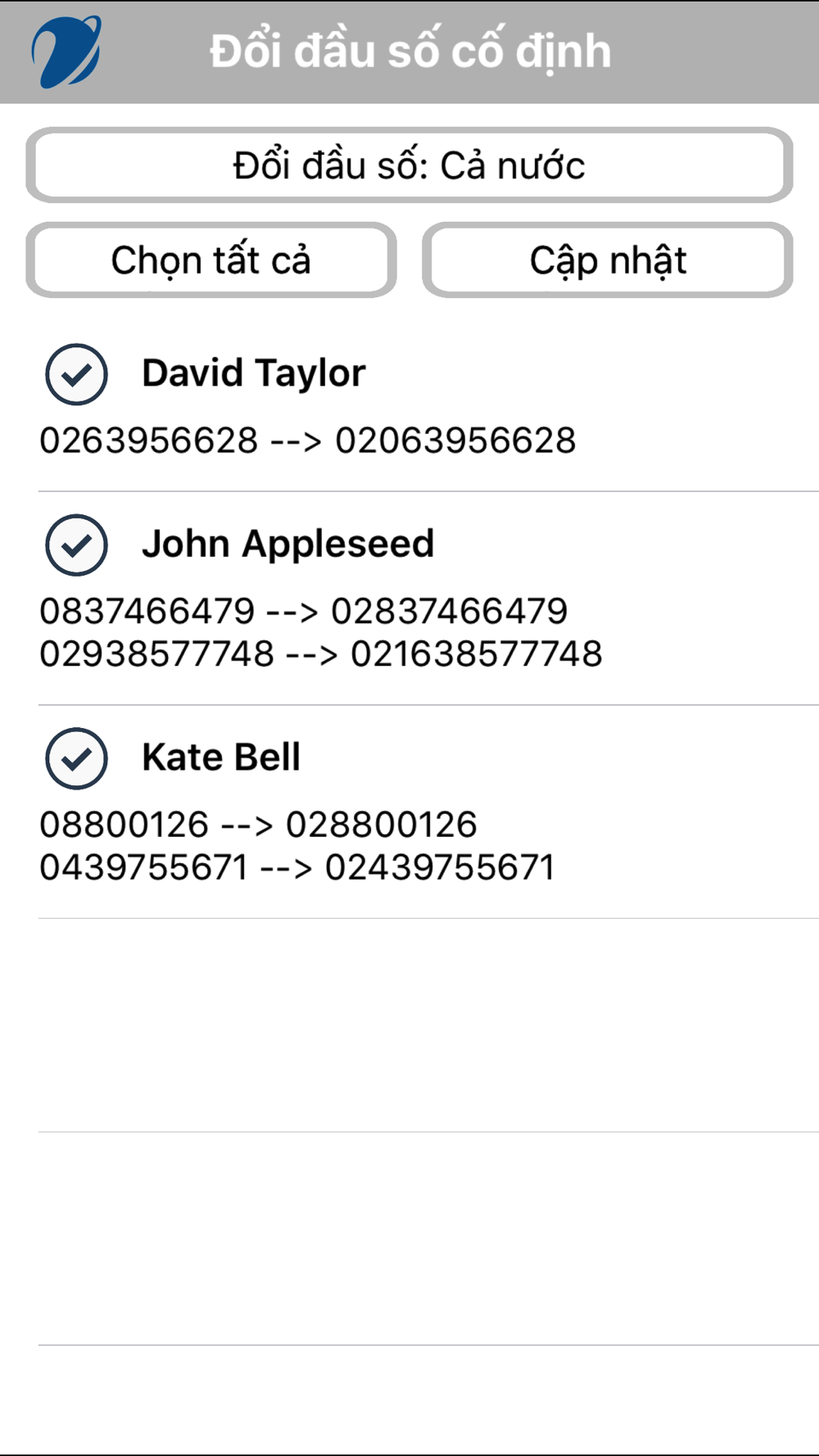 - Tự động duyệt danh bạ và hiển thị danh sách các số điện thoại cần cập nhật tính đến thời điểm đó