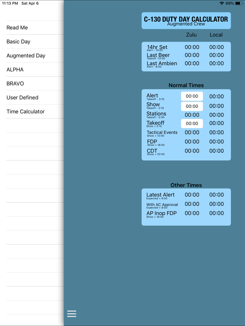 A C-130 Duty Day Calculator for crews hauling Uncle Sam's stuff around the world.