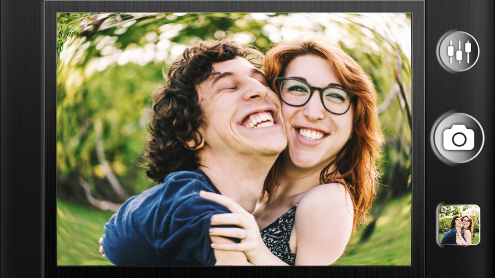 Fish Eye not only have a simulated 178-degree wide-angle view and a live fish eye viewfinder. Further more, it contains a set of lens, filters and Ring Texture which adds awesome and unique effects to your photos.