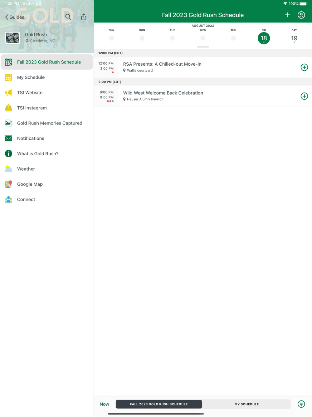Schedules- View up-to-date schedules for campus events and programs. Within each schedule, Niners can customize their experience by selecting the tracks that best meet their needs.