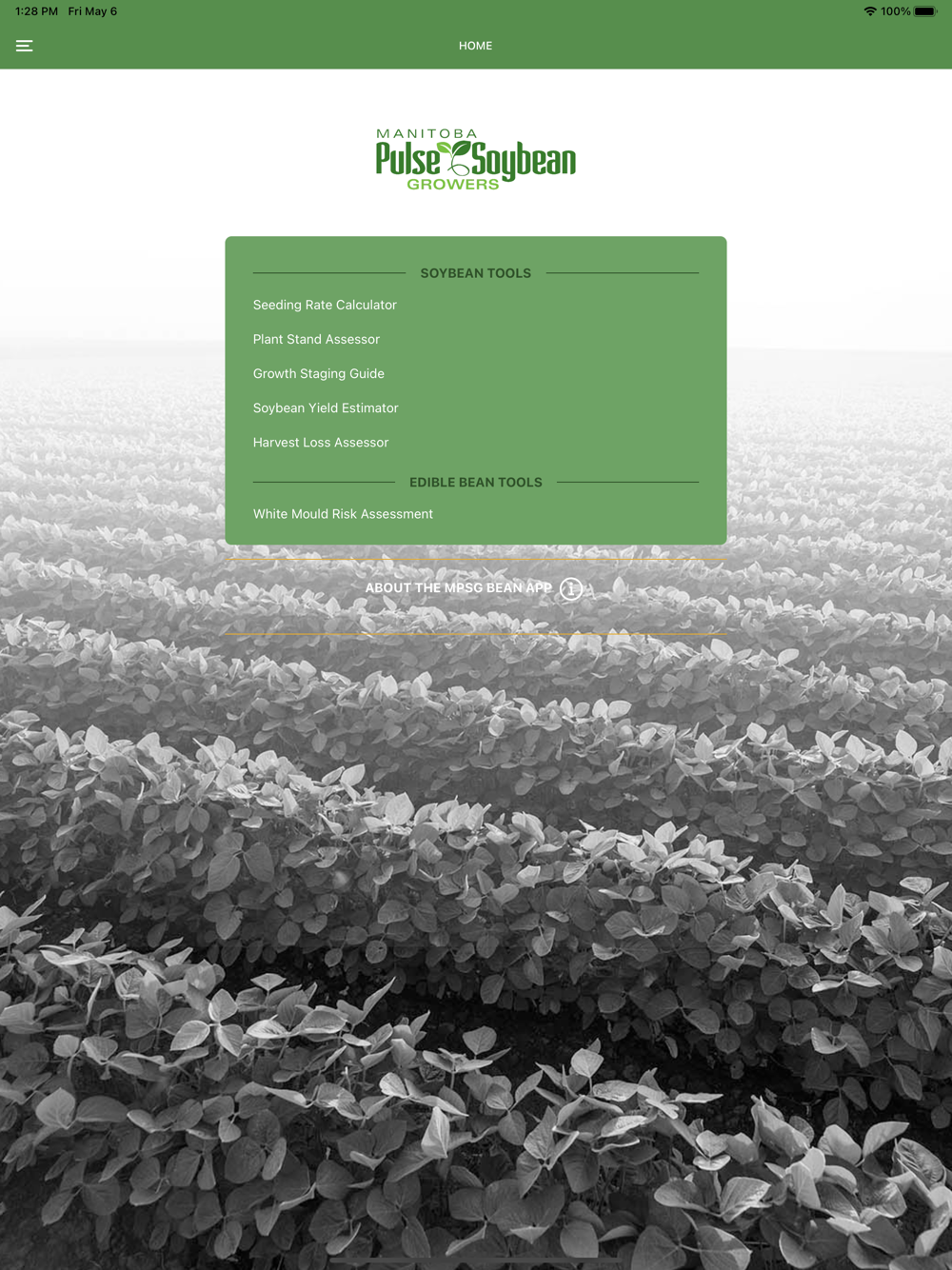 The Manitoba Pulse & Soybean Growers (MPSG) Bean app features unique and interactive tools to assist soybean and dry bean farmers with important crop production decisions, such as seeding rates and fungicide applications.