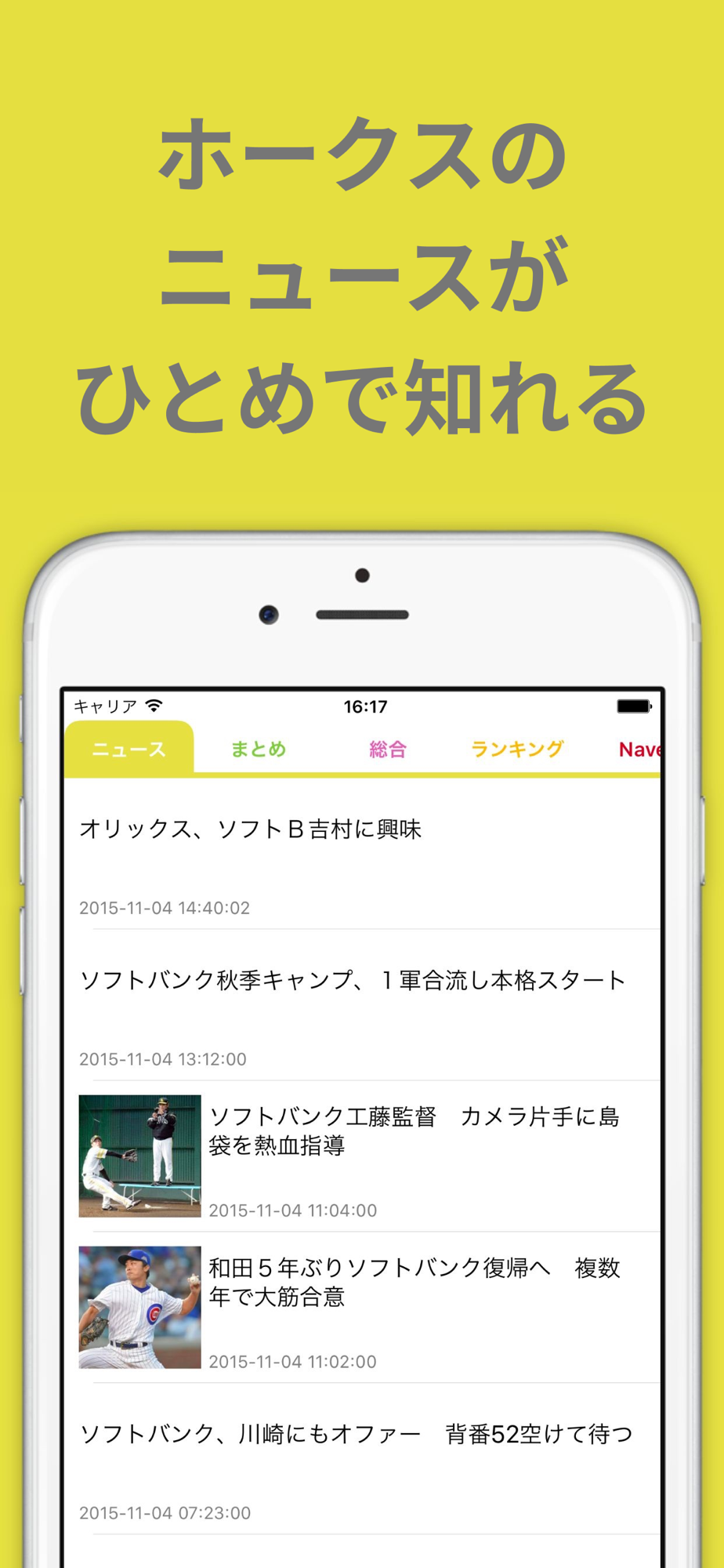 このアプリは福岡ソフトバンクホークスのニュース、動画、まとめブログ、試合結果や日程等を簡単に得られる無料アプリです。