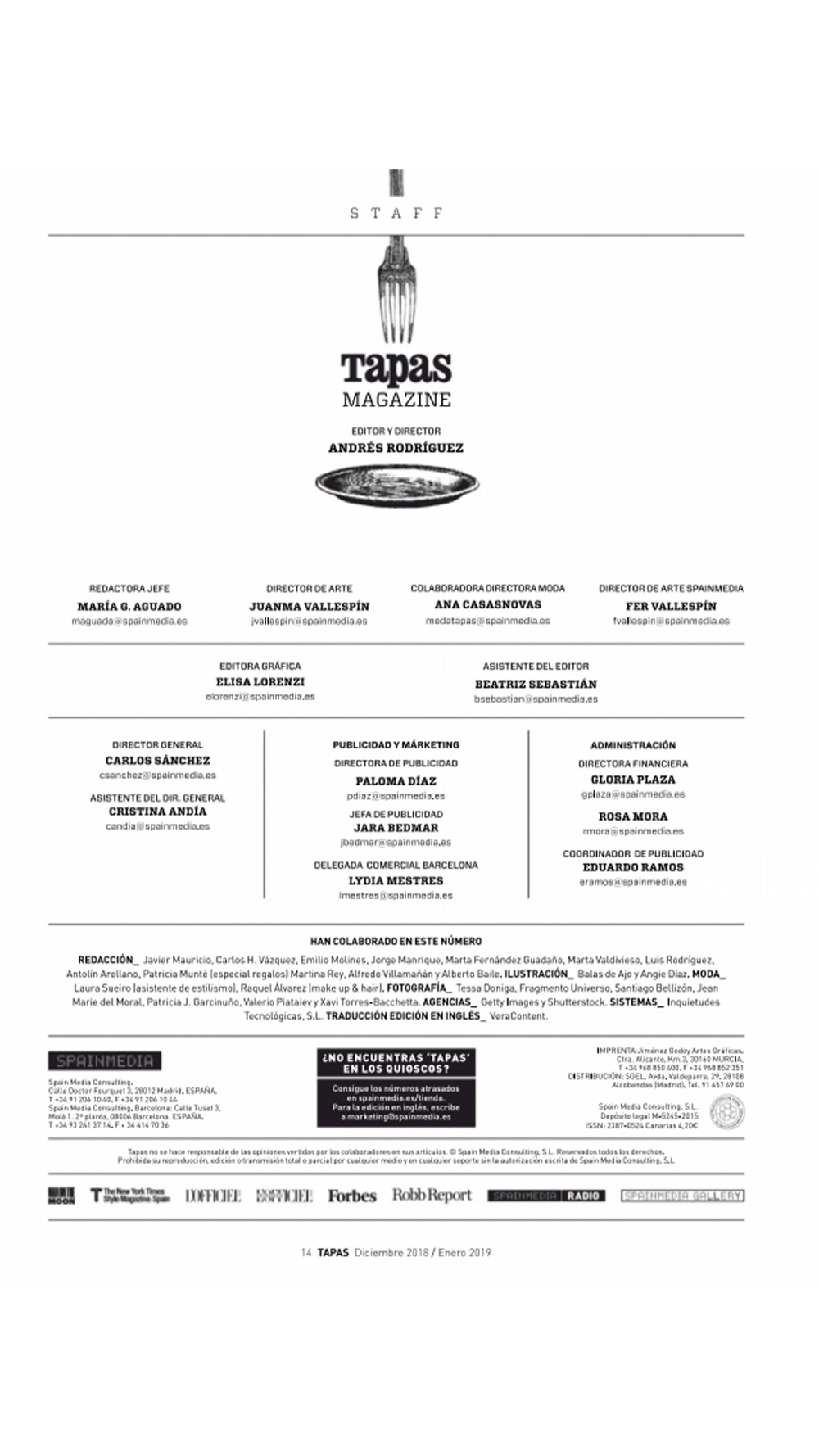 Llega TAPAS MAGAZINE, la primera revista gastronómica y lifestyle de SPAINMEDIA. Una revista cocinada a fuego lento, fácil de digerir. Explicamos cómo funciona nuestro planeta a través de la relación cotidiana con la bebida y la comida. Lo haremos en español y en inglés, porque TAPAS es una palabra global, porque se trata de una de las grandes aportaciones de nuestra cultura gastronómica al mundo. En definitiva:cocinamos mes a mes, con mucho esmero, una revista para comérsela.