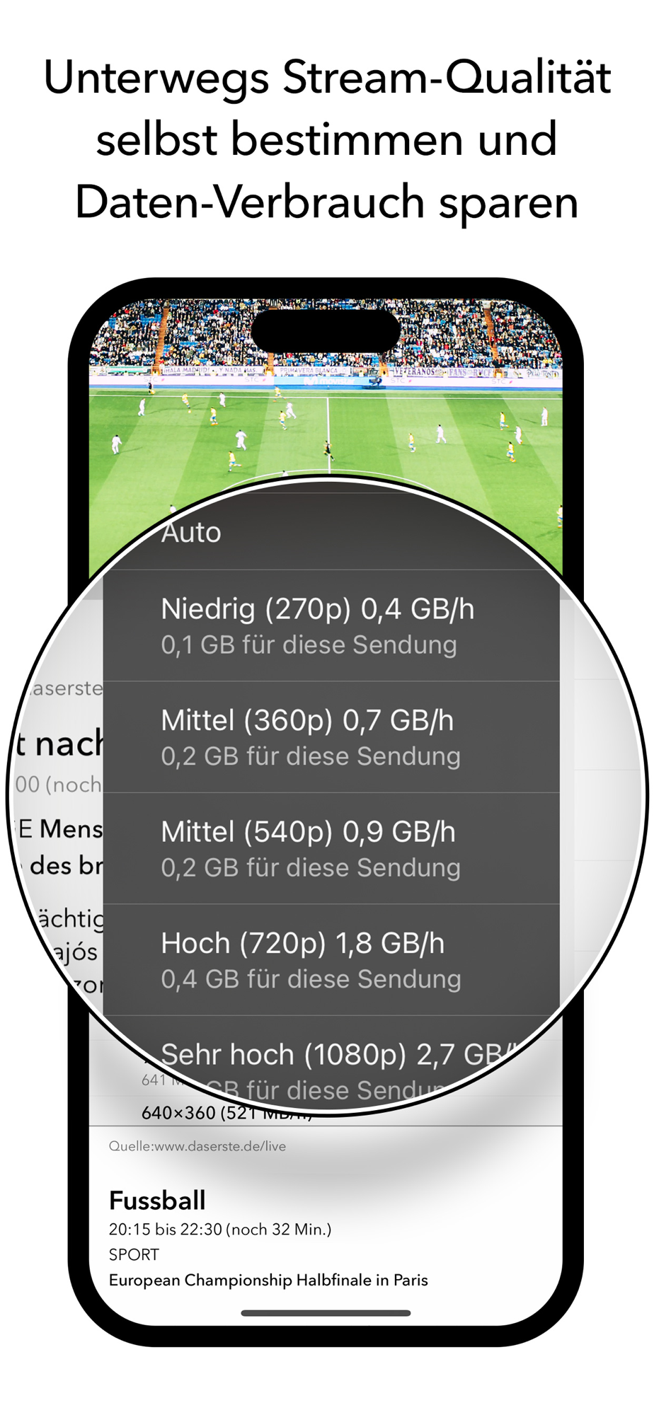 · Pro Stream individuell den Datenverbrauch und Auflösung wählen - optimal für unterwegs