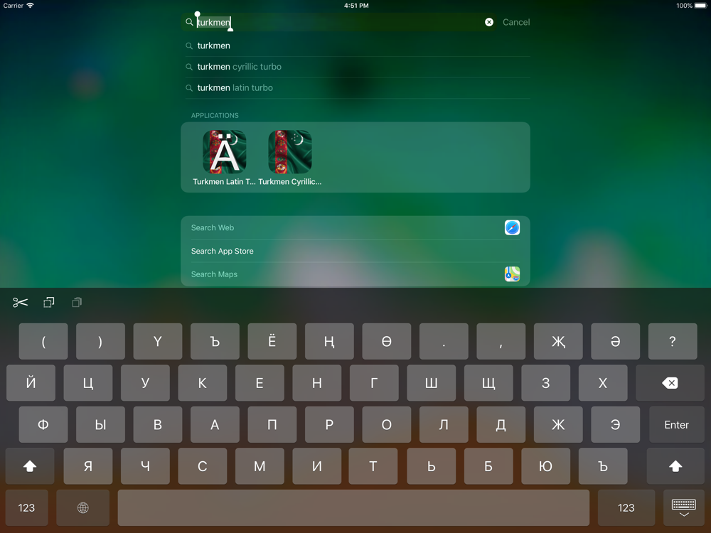 Туркменская кириллическая Клавиатура (системная!) не только для iPhone, но и для iPad - в одном приложении!
