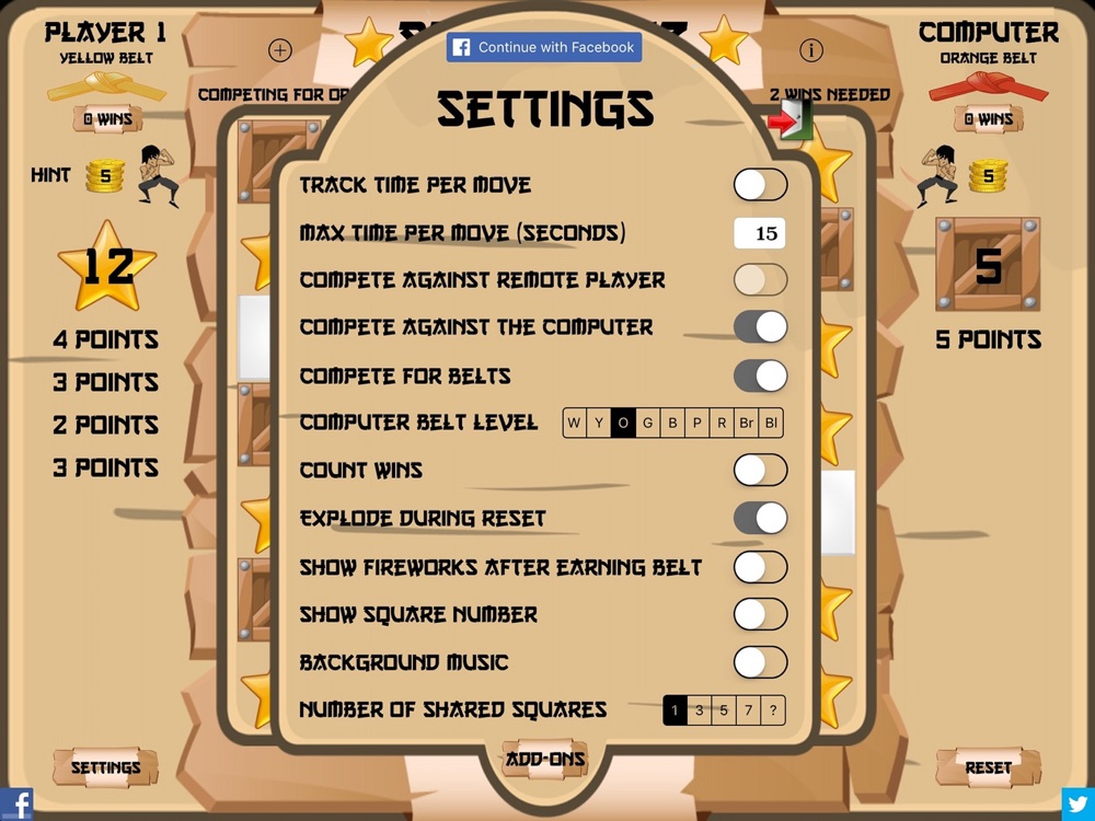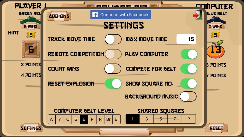 Do you have what it takes to become a Square Biz black belts? Black belts have demonstrated the mental toughness needed to beat the computer black belt. Only a small percentage of the population has what it takes to become a Square Biz black belt. The Square Biz Ninja is there to help you beat your opponent. You must use the Ninja wisely for suggestions or to take an opponent's square.