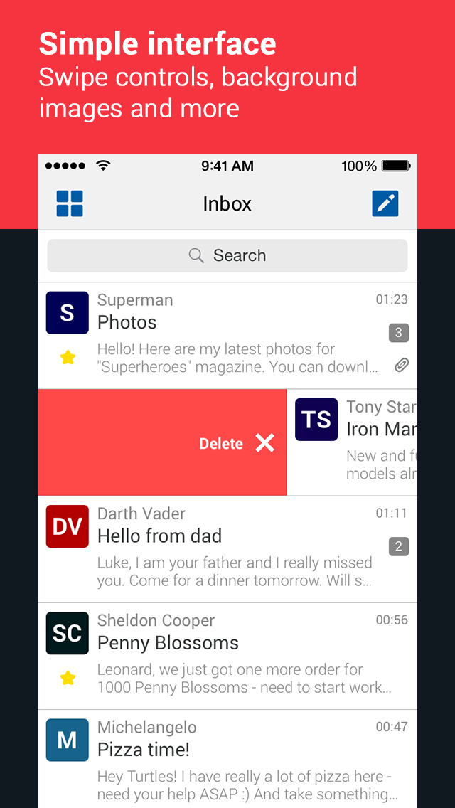 ● incoming push notification actions on lock screen - star or delete incoming messages without opening the application (requires iOS8+)