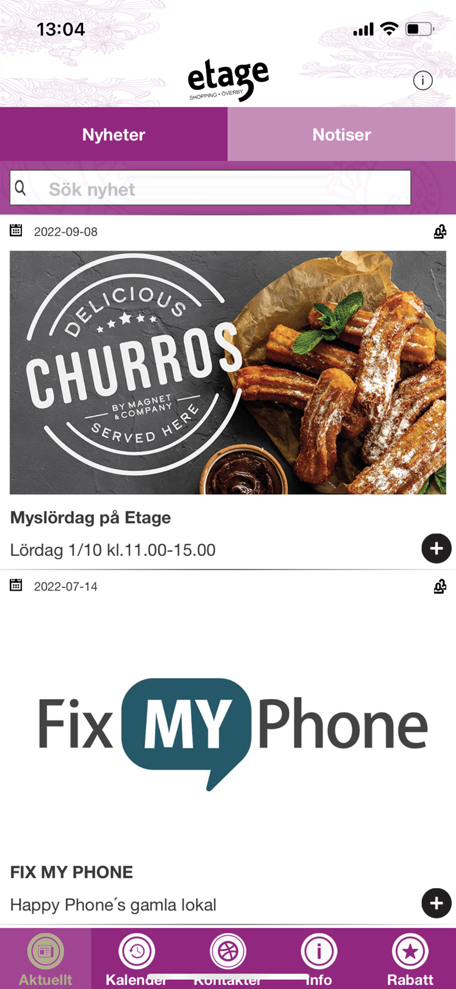 Intern applikation för alla anställda som arbetar och verkar på Etage Shopping Överby , appen skyddas av lösenord som distribueras av centerledningen.