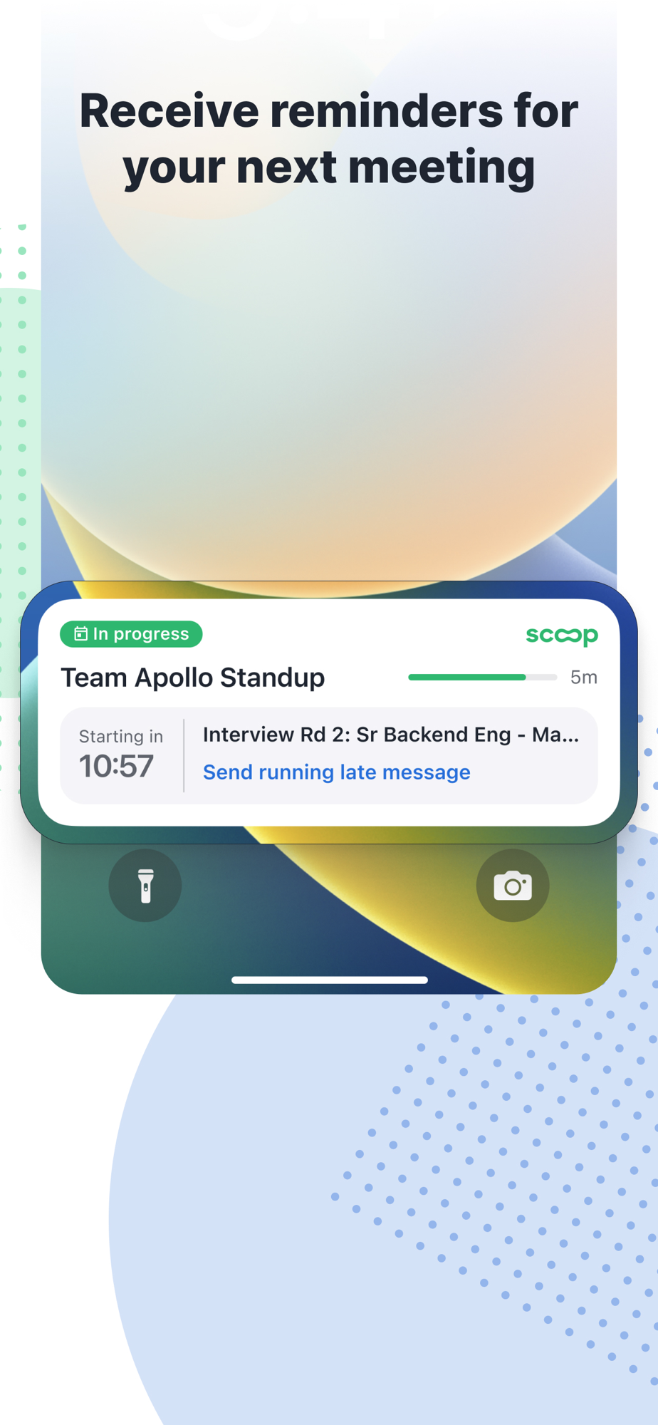 Stay on top of your meeting schedule with Live Activities. See real-time countdowns for in-progress and upcoming meetings.