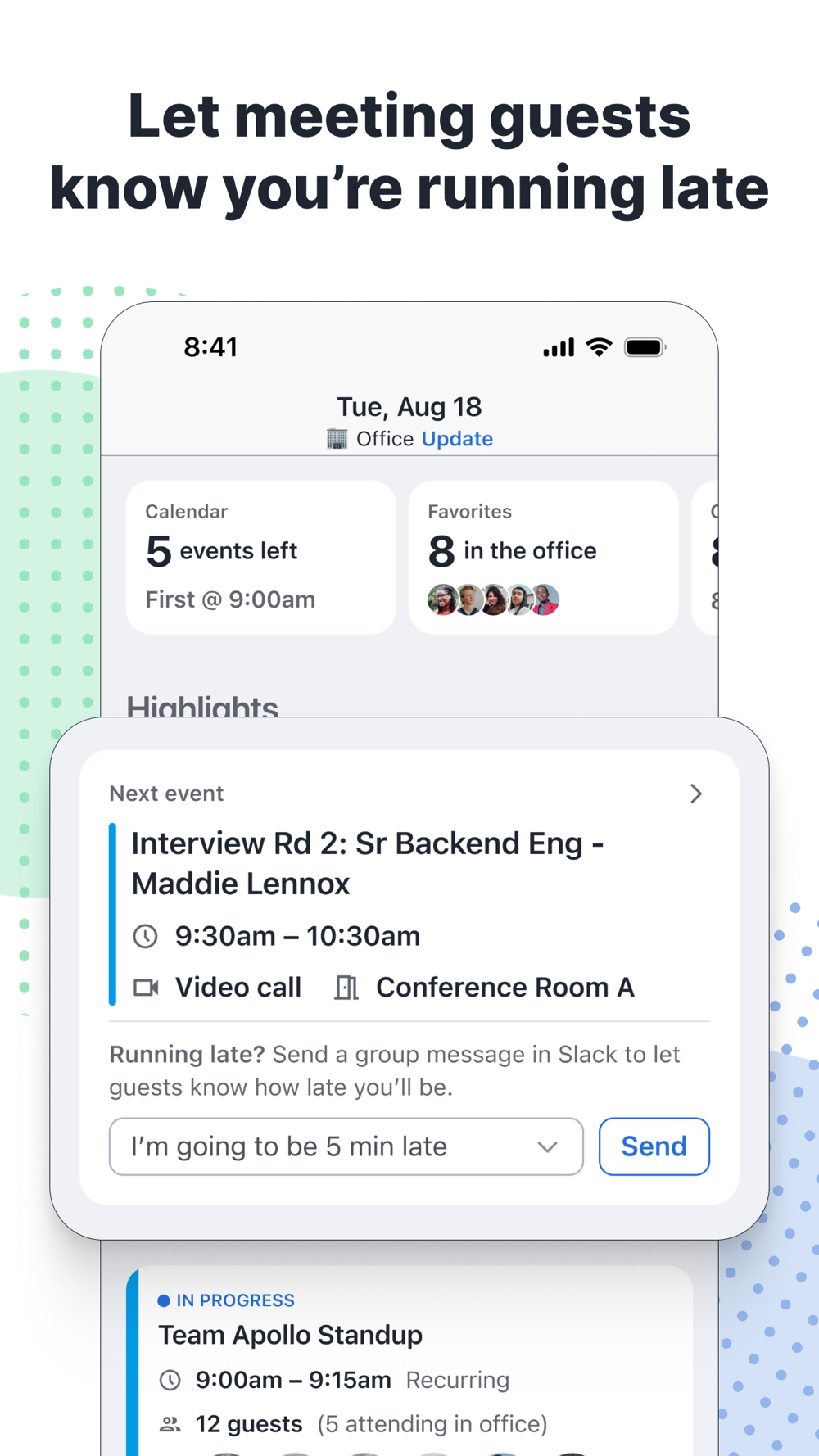 Let meeting guests know you’re running late