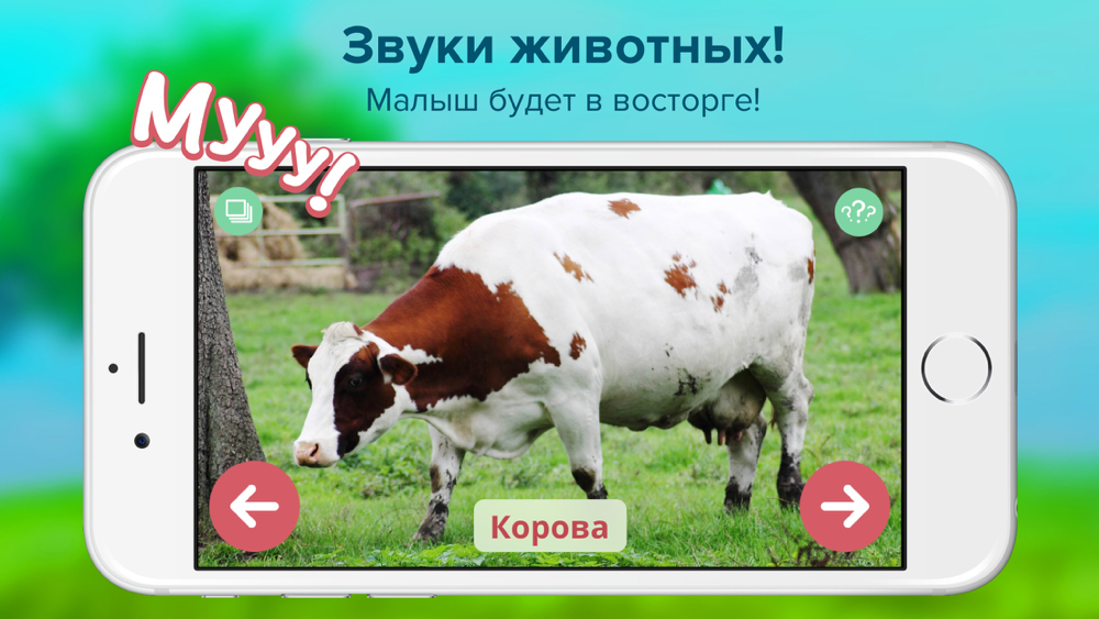Тщательно подобранные фотографии, интуитивный и простой интерфейс, звуки животных и отличный женский голос диктора не только способствуют развитию памяти и речи, но и погружают ребенка в увлекательное путешествие по животному миру.