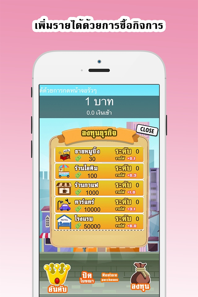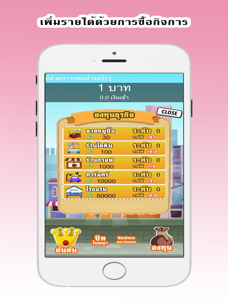 เถ้าแก่น้อย เกมส์เศรษฐี เกมสอนการลงทุนง่ายๆ เก็บเงินด้วยการ tap หน้าจอเรื่อยๆ จากนั้นนำเงินที่ได้ไปลงทุนซื้อธุรกิจ เพื่อเพิ่มรายได้ของเราได้มากยิ่งขึ้น เพิ่มอันดับฐานะการเงินของเรา มุ่งหน้าสู่เส้นทางเจ้าสัวน้อยรายใหม่ โหลดฟรีเล่นฟรีกับ เถ้าแก่น้อย เกมส์เศรษฐี