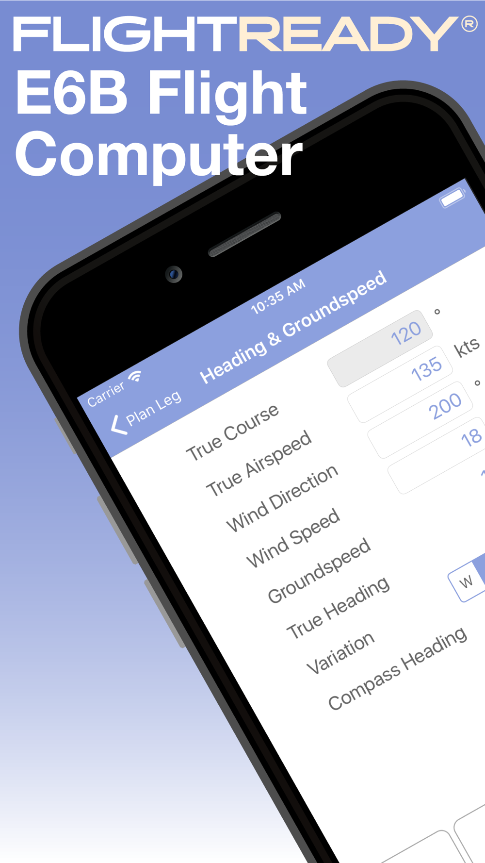 An E6B flight computer is traditionally an analog device resembling a combination slide rule and slide wheel that performs calculations specific to aviation. For example, an E6B can be used to calculate heading and groundspeed after taking into account forecast winds. An E6B is also used to calculate data used for performance planning such as density altitude. Our version goes beyond the analog E6B and even beyond all other E6B apps by including functionality to calculate time, rate and radius of turns, pivotal altitude (great for flight training use), and more.