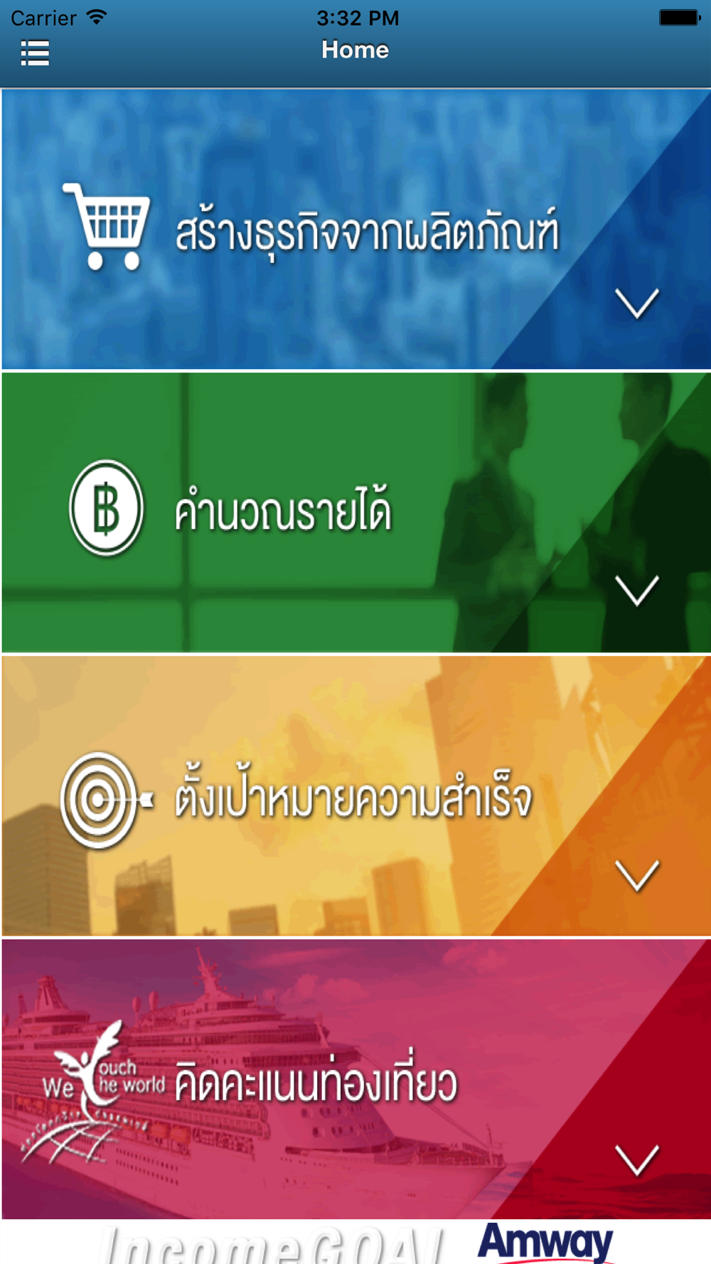 Income Simulator on iPad is the system to provide understanding for Amway prospects by creating an information model based on the real calculation process regarding to Amway policy. To avoid the confusion of prospects and new ABOs in running the business due to the detailed rules in Amway Business Plan, we have created the Income Simulator to facilitate prospects and new ABOs with simply basic and easy access to the complete information comprising 4 functions below: