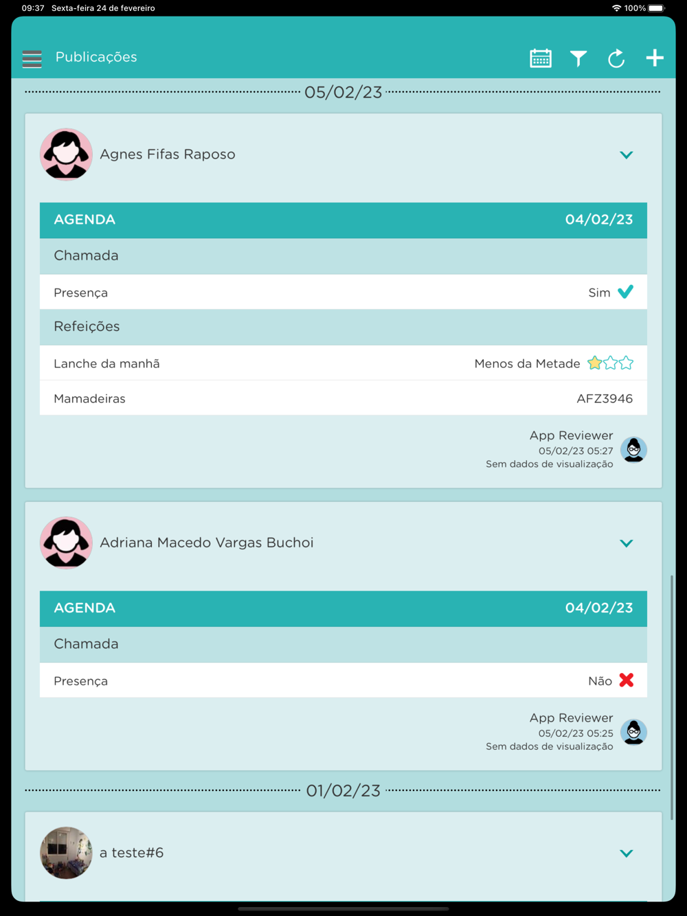 * Dados: tenha o cadastro dos responsáveis, alunos, profissionais e da própria escola diretamente no seu tablet