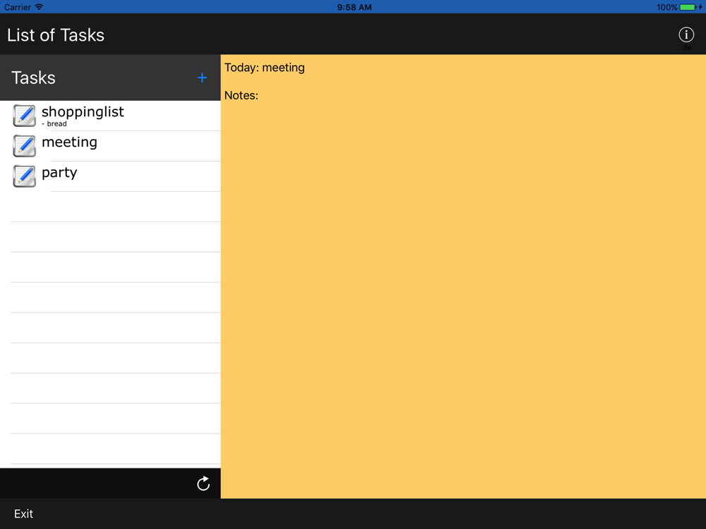 Only a large note field is available for the notes, so you always have important notes in view. Tasks can be created, edited and simply delete with a wipe.