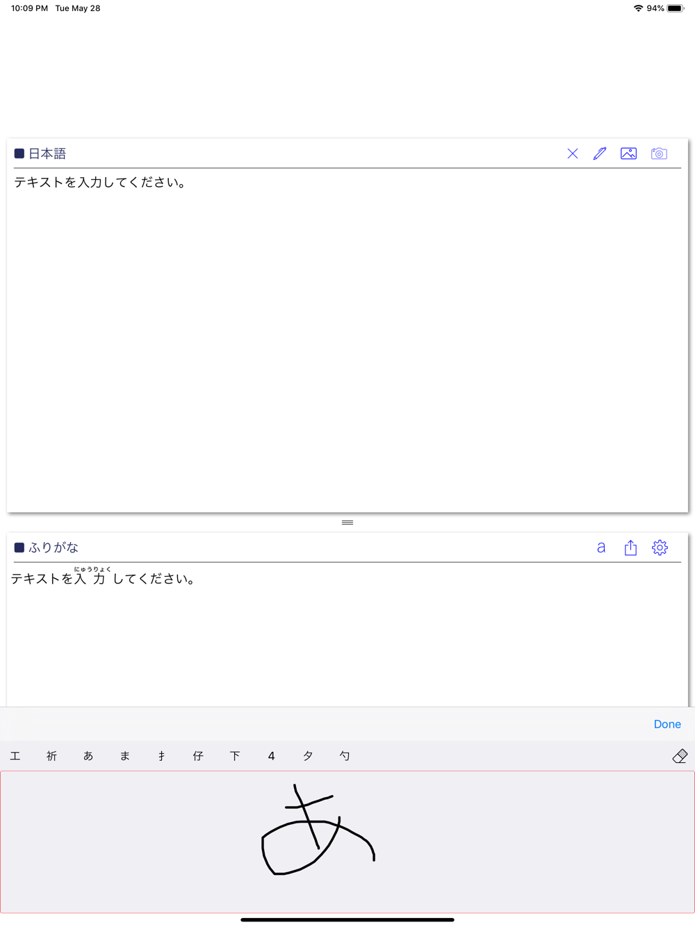 This is an APP that add ruby characters (furigana) to Japanese inputted by camera, photo, pasting, handwriting for Japanese beginner automatically.