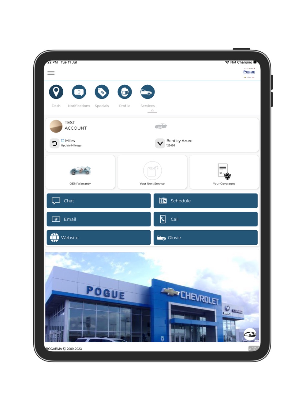 The Pogue Auto Care app provides a portal for users to: