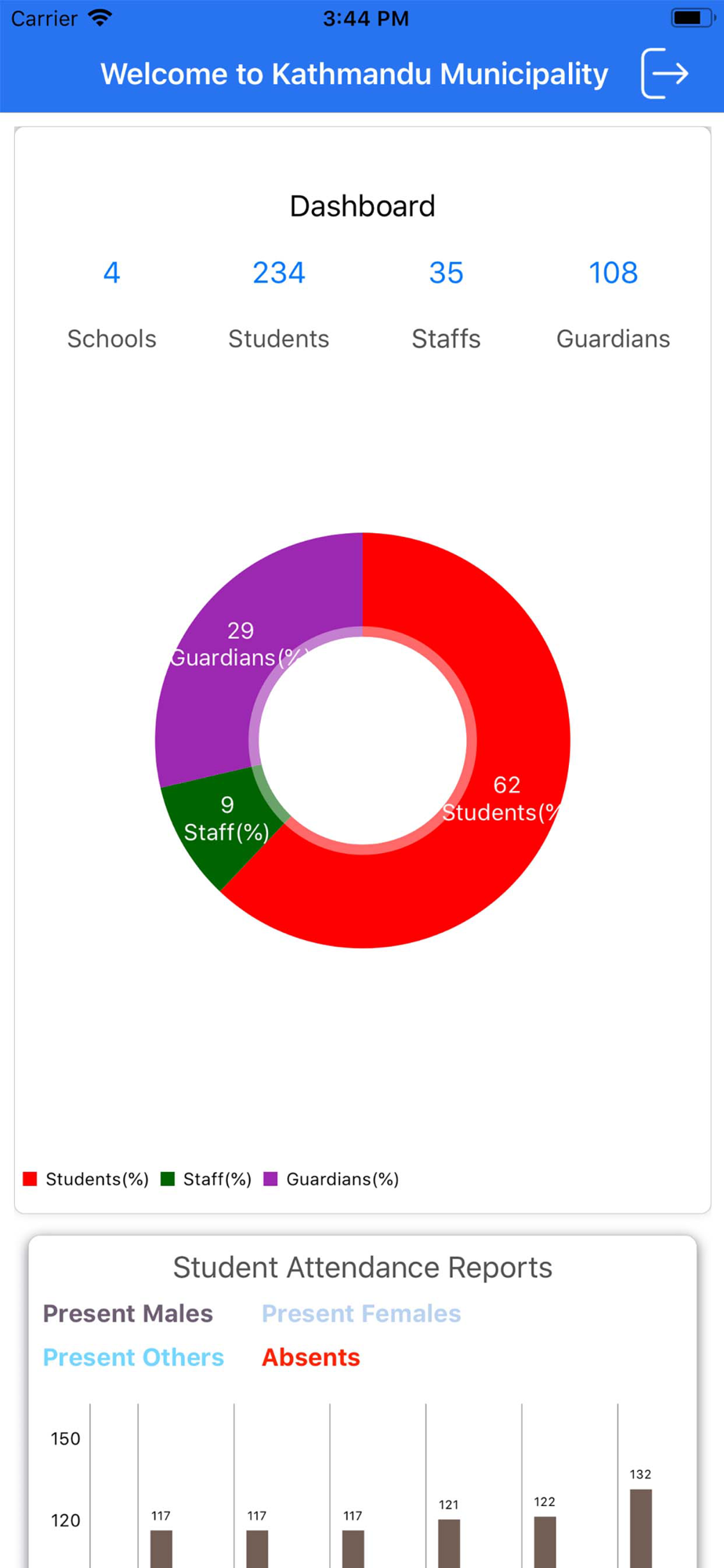 Digital Nepal Mayor app is the Central monitoring system of the school under the on area.In which founder or head of the area can easily view each and every report's like attendance,leave,payroll,event,data,result etc.