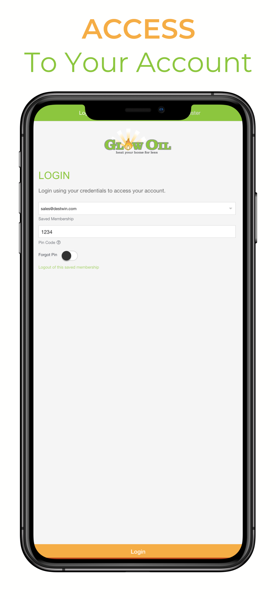 Welcome to the Glow Oil App! From here you can view all your account information, pay for your deliveries, and schedule deliveries.