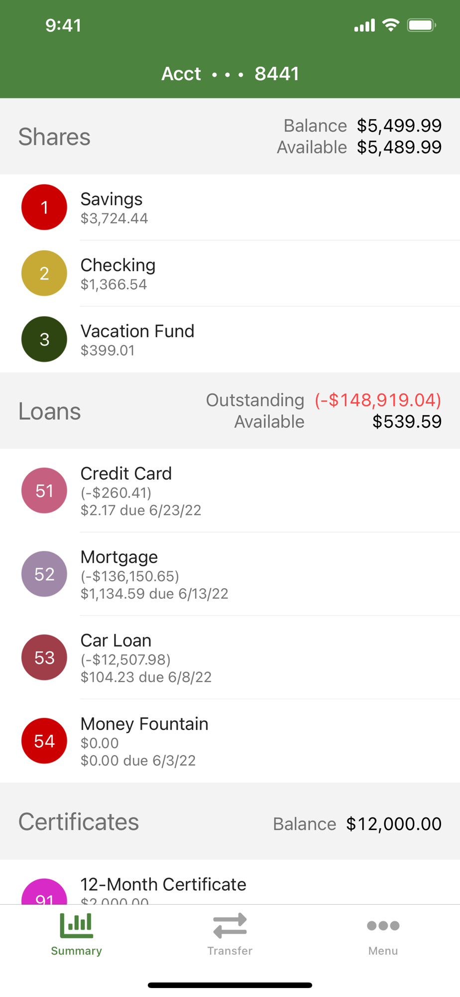 • View balances and transaction history