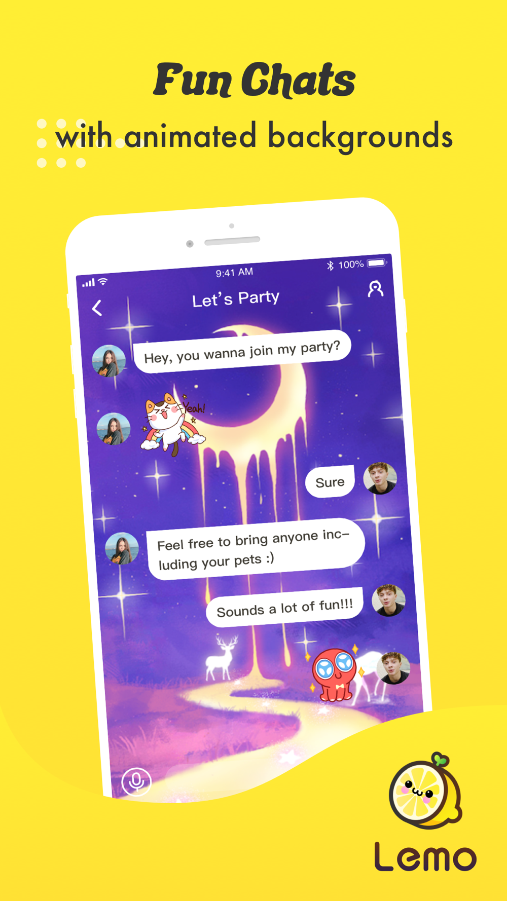 Lemo offers the opportunity to make new friends virtually and a multifaceted platform where you can host video/audio chats, games, and, unlike ever before, unlock different themes and Lemojis as you accomplish unique in-app missions ! This app will allow you to post moments, join any room hosted by an array of people, and discover new music together . Lemo gives you the chance to be together while apart.
