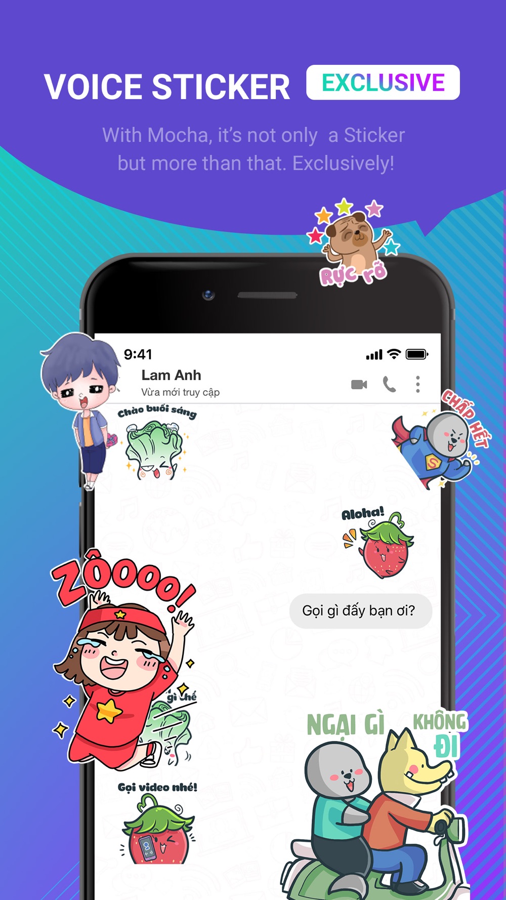 8. Voice STICKERS: your friends will be surely impressed by receiving super funny stickers with SOUND, only in Mocha.