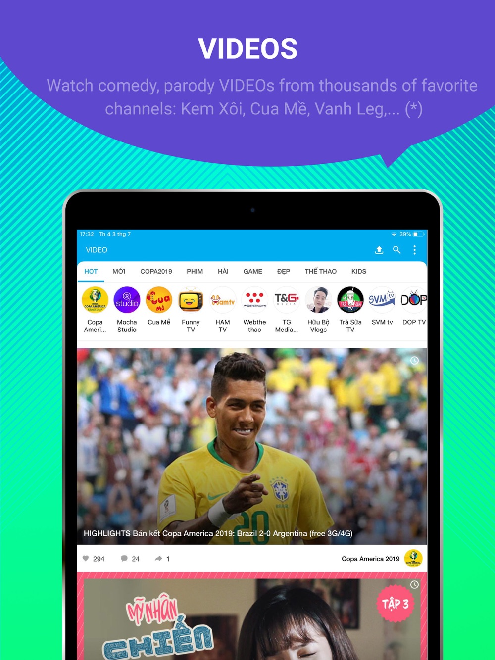 6. Watch comedy, parody VIDEO from thousands of favorite Vietnamese channels: Kem Xoi, Cua Me, FapTV, Vanh Leg, The thao 24h, Schannel,...