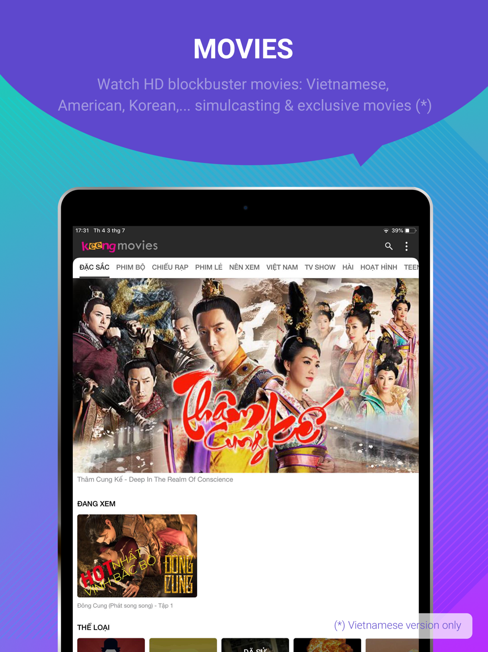 4. Watch HD BLOCKBUSTER movies: Thousands of Vietnamese, American, Korean simulcasting movies, exclusive movies.