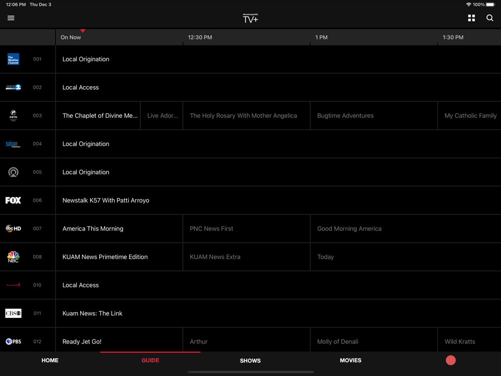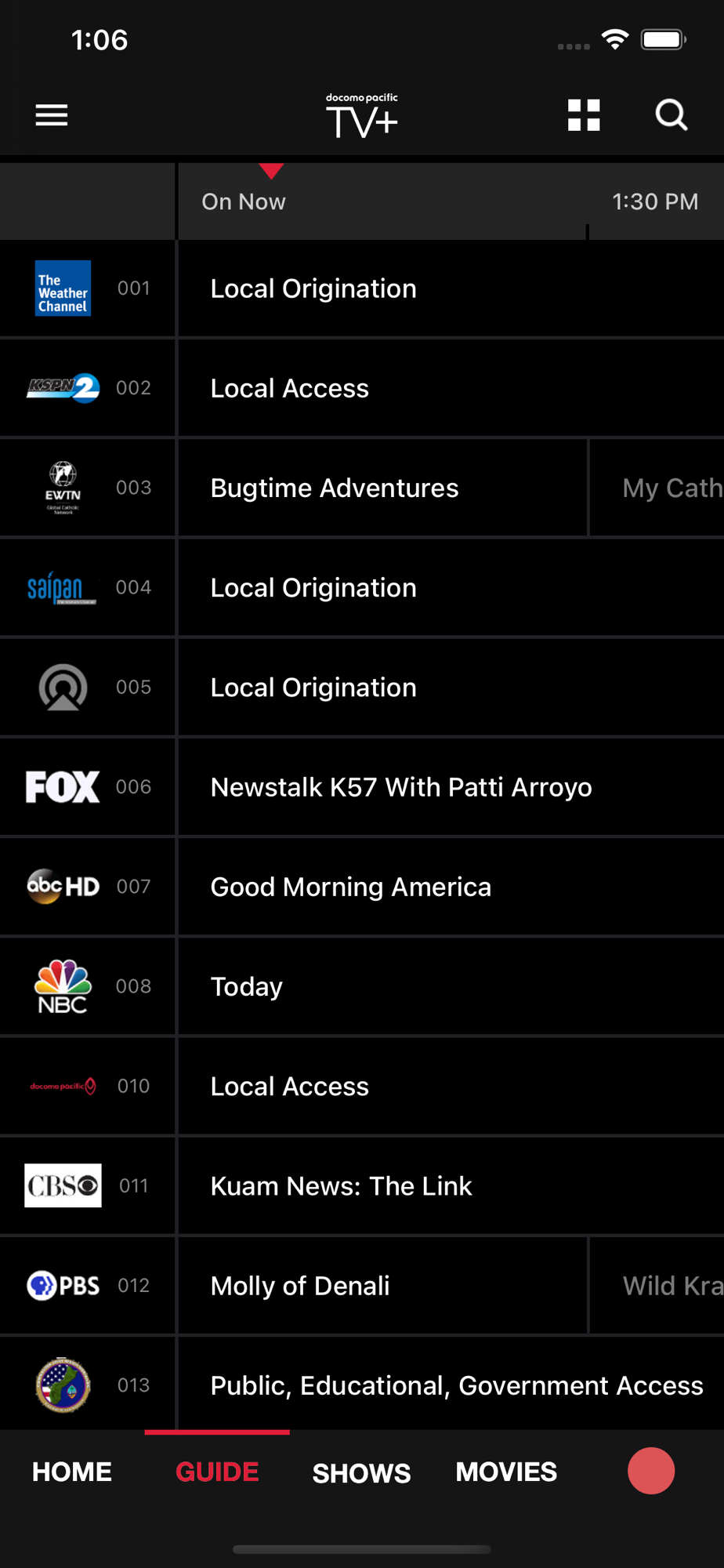 Docomo Pacific TV+ is a live, app-based TV platform exclusively available in Guam & CNMI. The app allows Docomo Pacific TV+ customers to access DOCOMO PACIFIC's local and national cable TV channel line-up on streaming devices for in-home viewing, without the need of a cable set-top