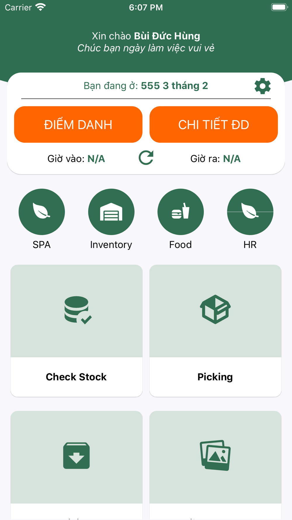 - Các chức năng liên quan đến hệ thống công ty như: Inventory, S.P.A, HR, Attendance