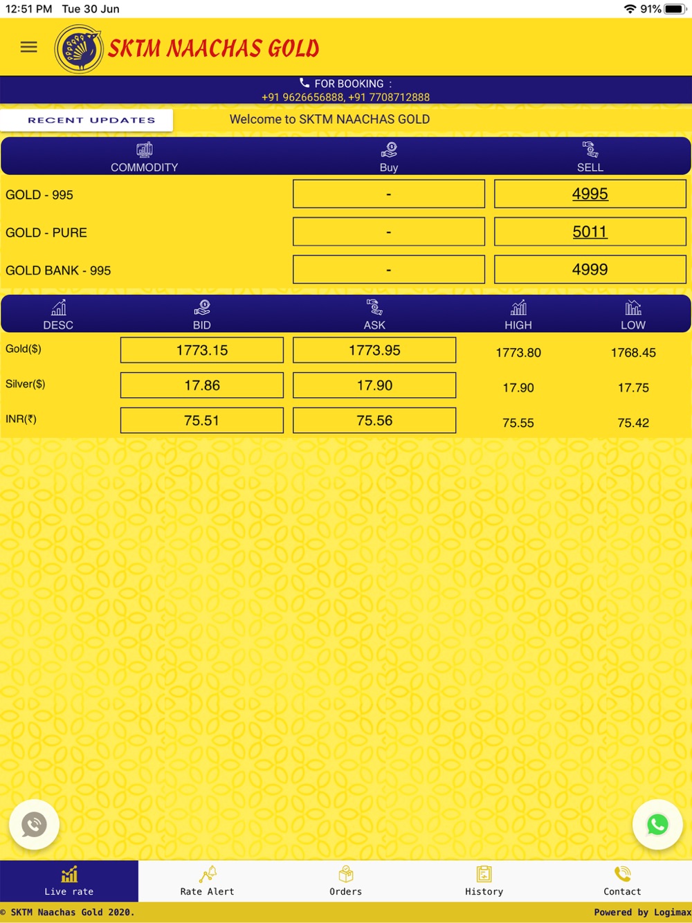 SKTM Nachas Gold brings you a simplified and efficient bullion trading platform. Our mobile trading platform delivers the fastest, most accurate and reliable trading experience. SKTM Nachas Gold also provide a facility of online trading.