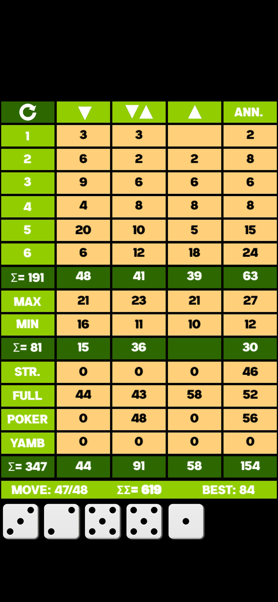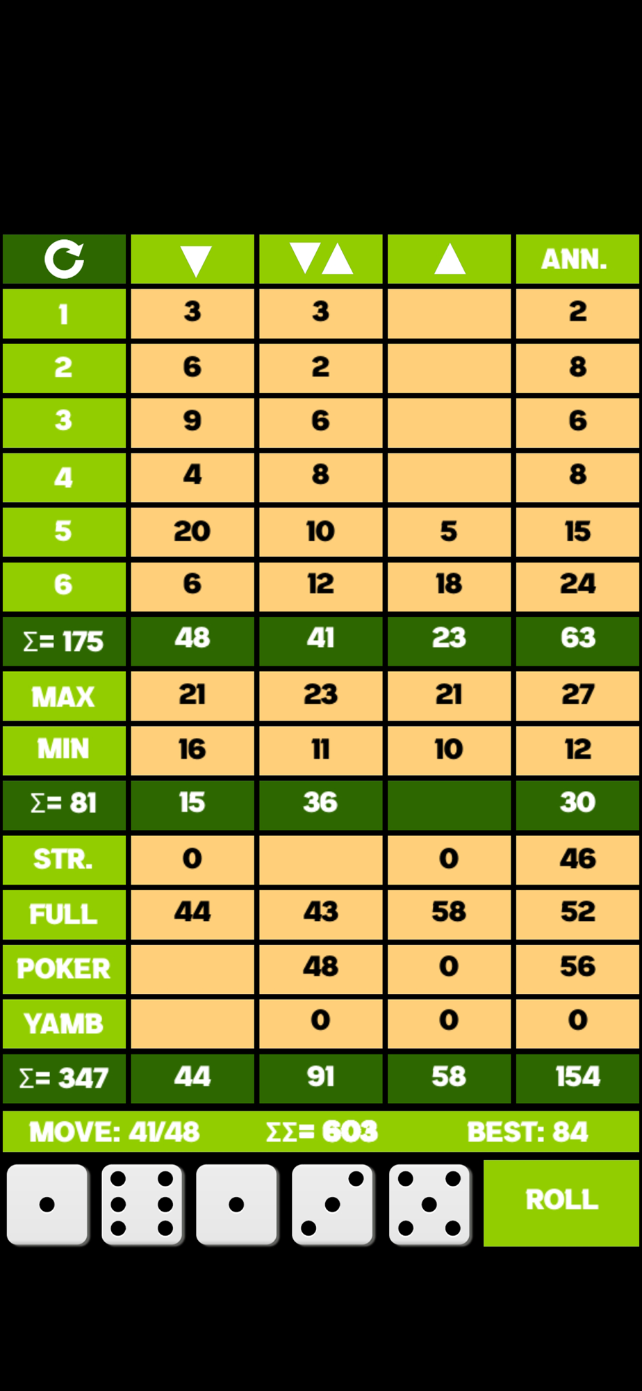 Yamb yahtzee dice game