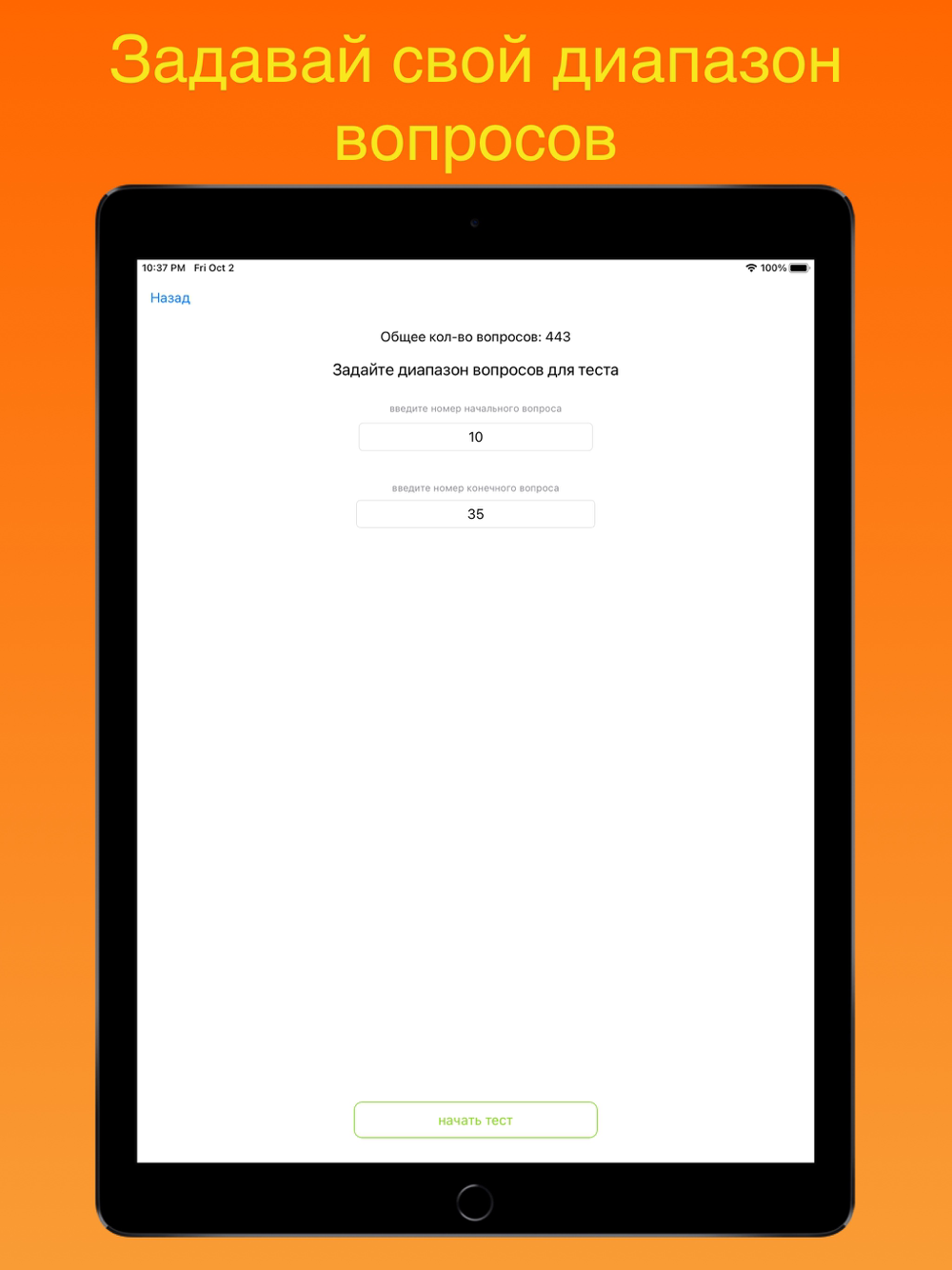 • Марафон - Предлагается ответить на все вопросы с возможностью выбора вопросов или же все вопросы, без ограничения по времени и ошибкам;