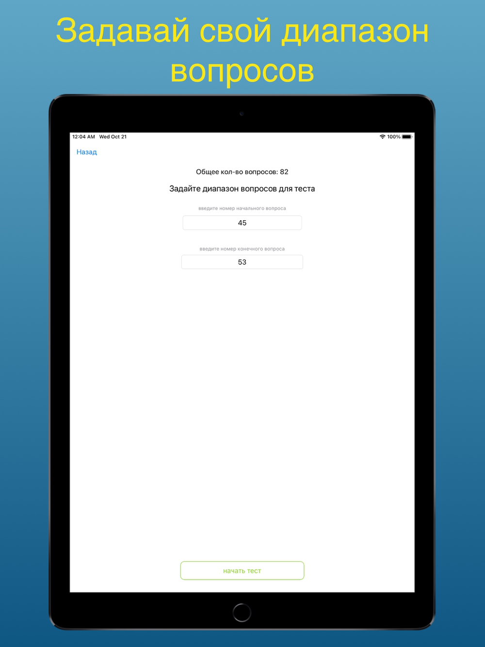 • Подготовка - Позволяет изучить вопросы в текстовом формате с отмеченными правильными ответами;