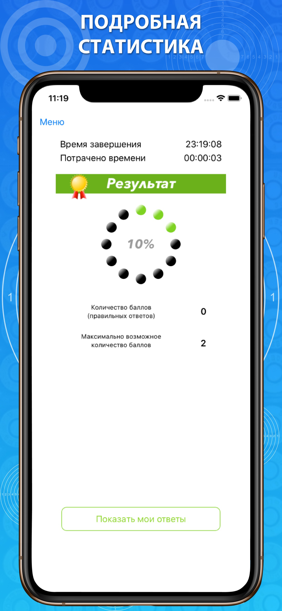 • Работа над ошибками - в режимах "Экзамен", "Марафон" и "Тренировка в избранном" Вы можете сделать работу над ошибками.