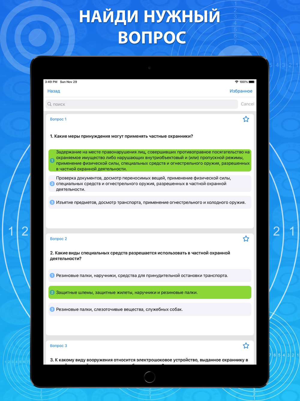 Тест-тренажер для подготовки к экзамену на оружие содержит: