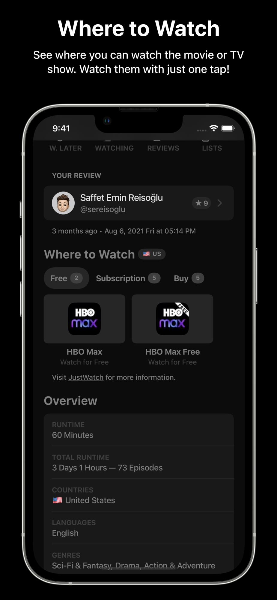 All your movies, TV shows, people, streaming services, networks, production companies, collections, and lists in one app.