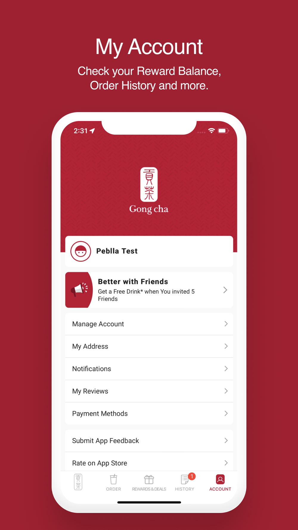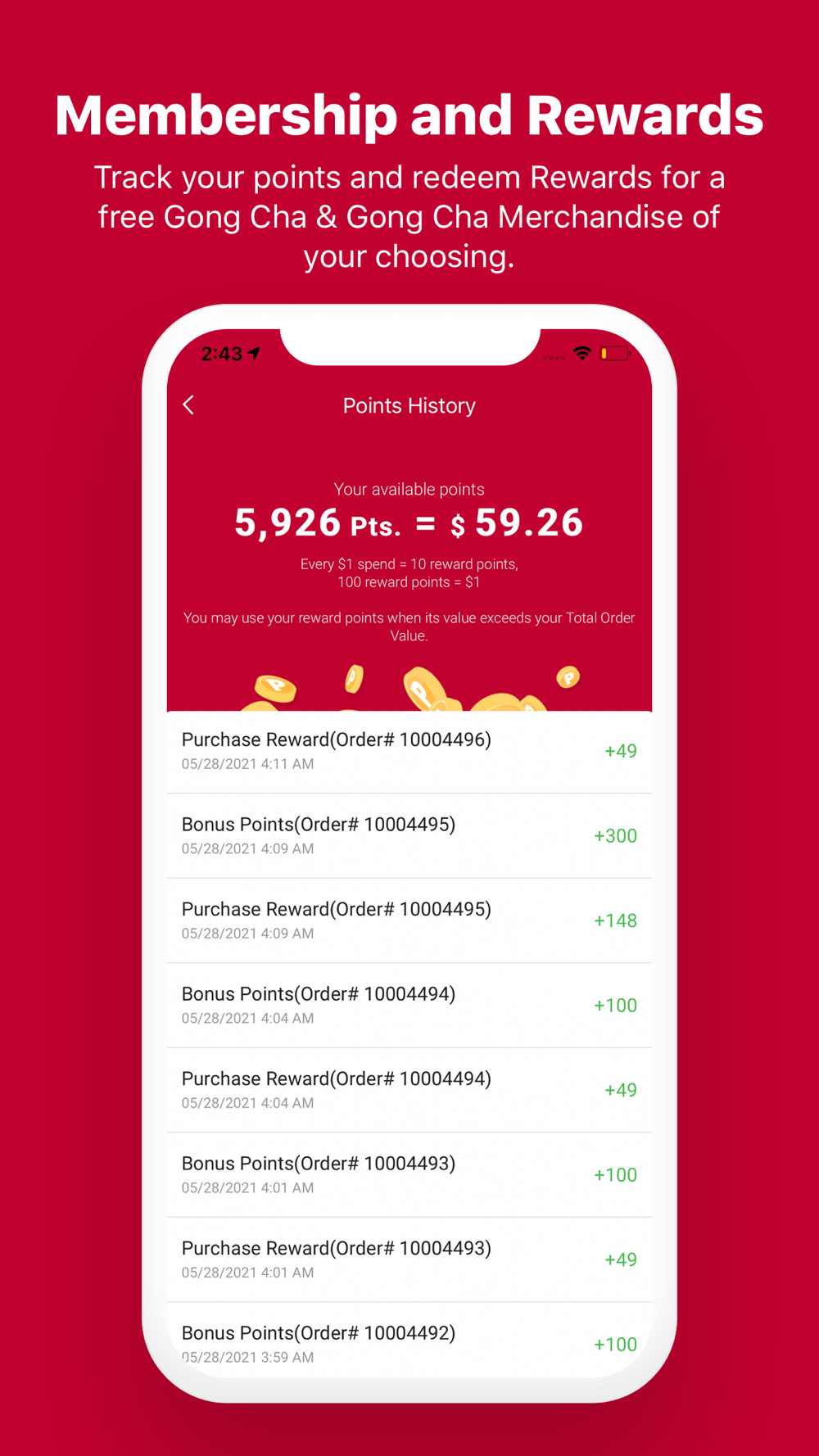 Track your points and redeem Rewards for a free GongCha & GongCha Merchandise of your choosing.