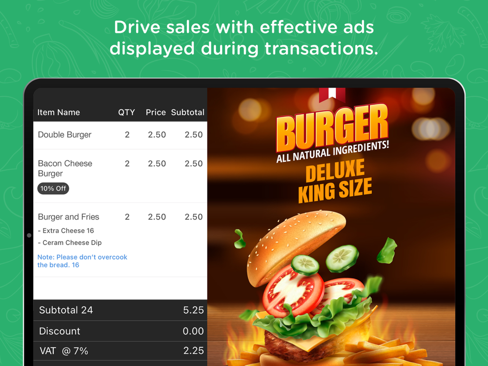 Introducing a new menu item or special offer? Promote it with beautiful ads displayed on your CDS while the order is rung up.
