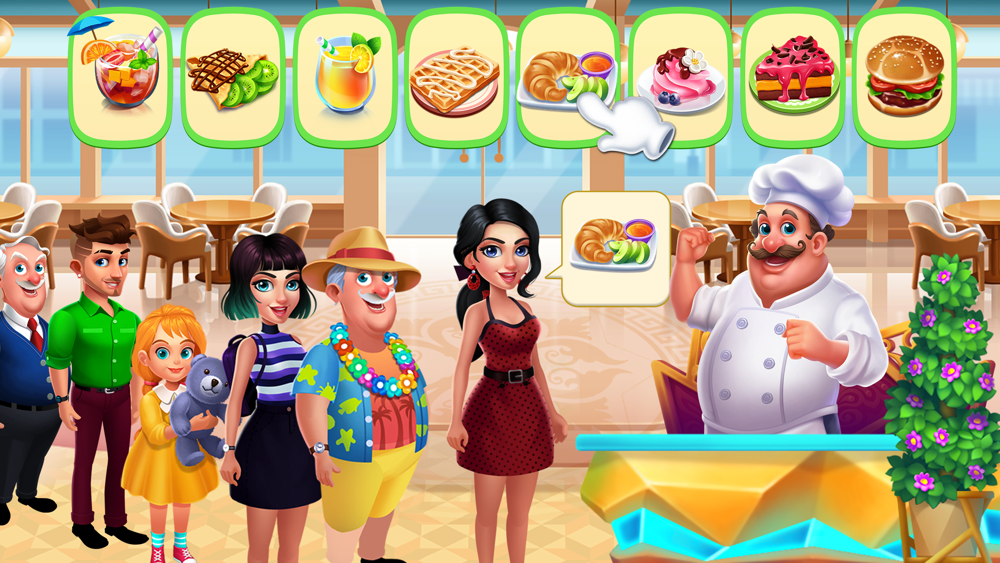 - Tap to prepare ingredients, cook and serve yummy meals.