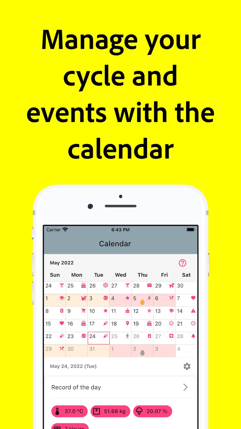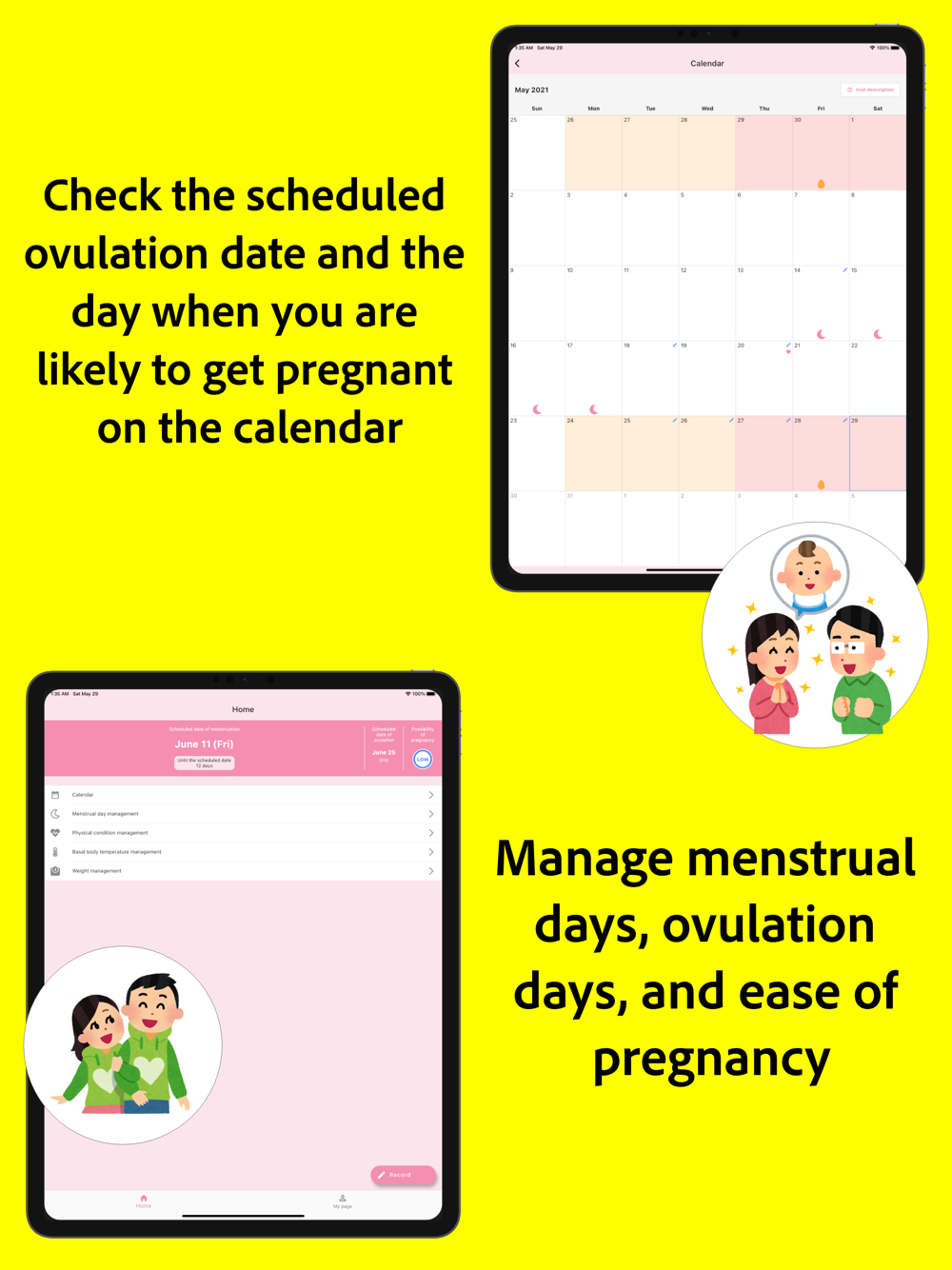 Record your menstrual period, basal body temperature, and weight every day, and the app will create a calendar for you.